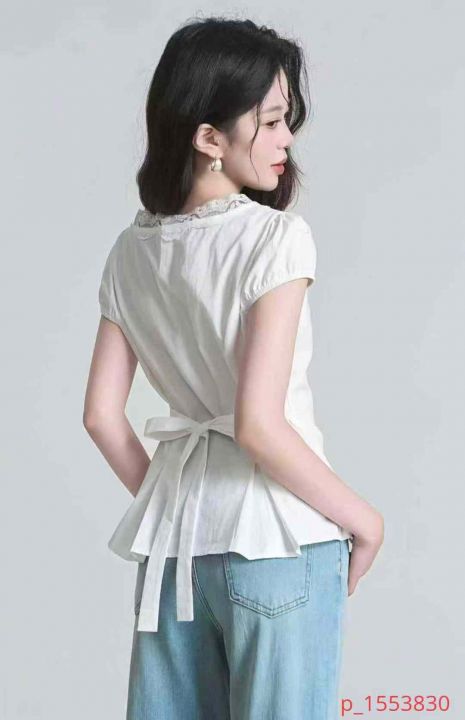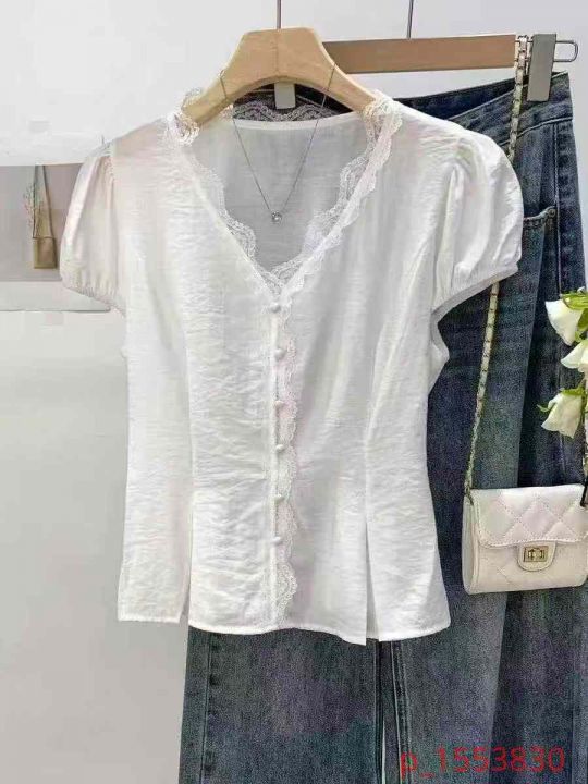 夏季法式蕾丝花边V领名媛风设计甜美收腰白色纯棉衬衫,独立包装带吊牌,码数S- 2XL码中间码数多,165件,全清5.9元超低价秒杀! _@_@