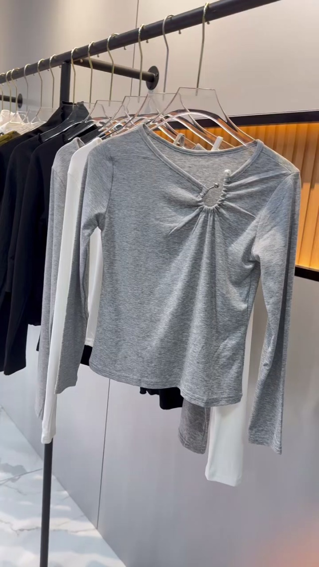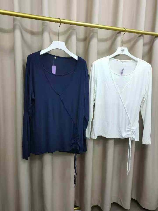 春夏新款外贸女装青春时尚宽松交叉V领套头长袖纯色抽绳T恤,独立包装带吊牌...
