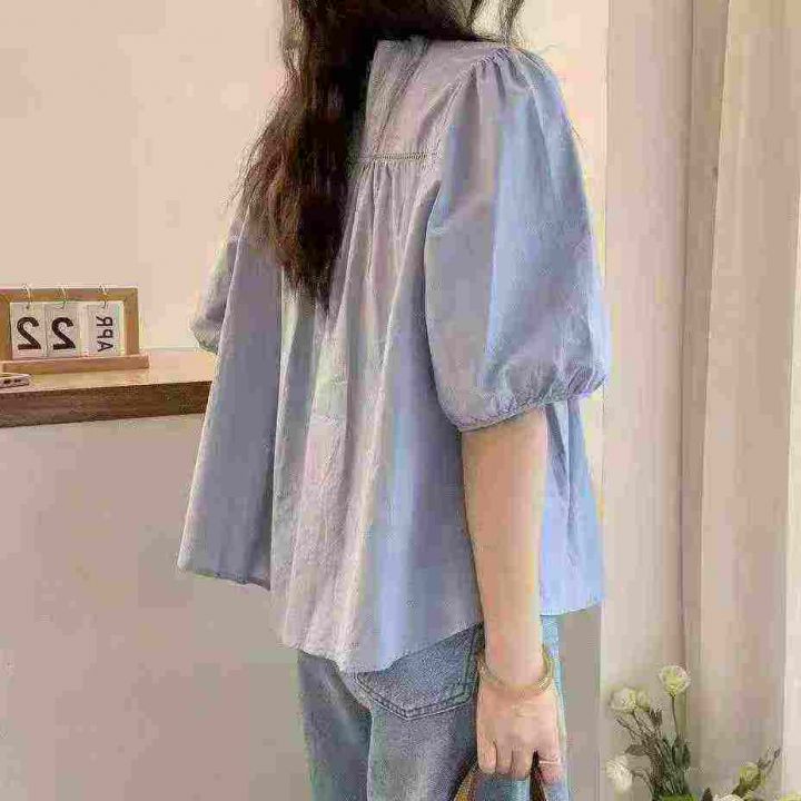 韩系小清新收腰设计遮肉宽松小衫上衣,[爱心]50件左右,款号#7220,码数S-2XL,穿80-140斤,万佳档口货,原包装️无瑕疵,[666]实体店品质