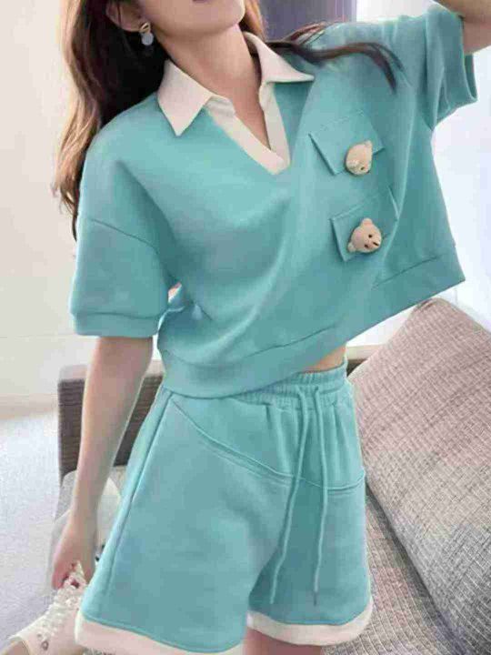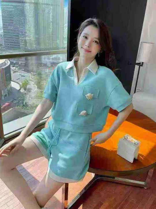 小香风套装炸街减龄高级感休闲运动服POLO领短袖短裤两...