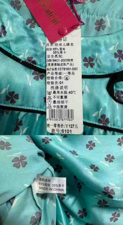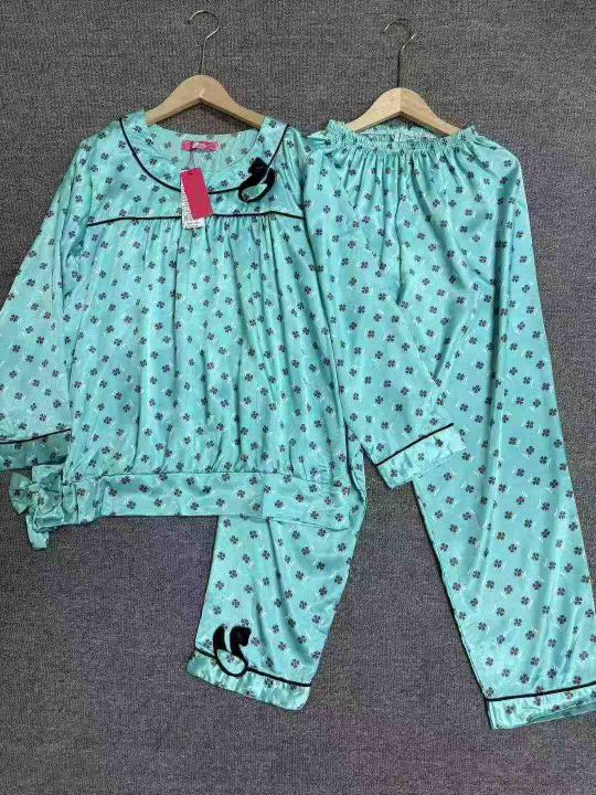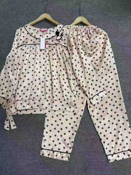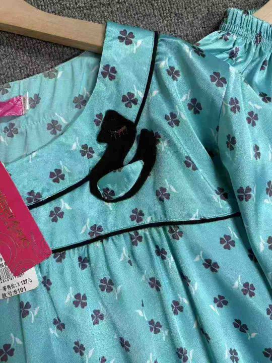 女士甜美法式仿真丝双长睡衣家居服套装,整款,120套,码数M、L