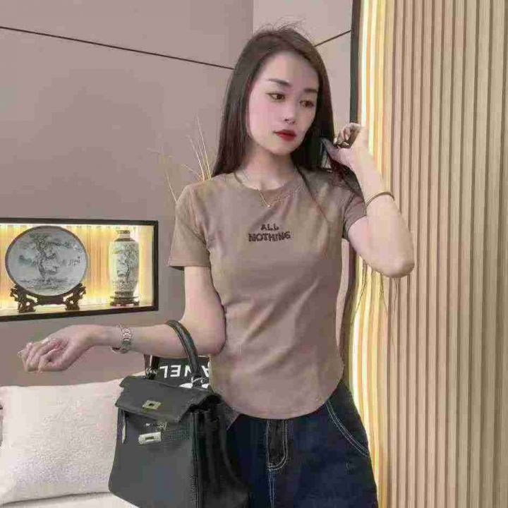 冰丝螺纹短袖t恤女夏修身显瘦甜辣小上衣设计感小众202...