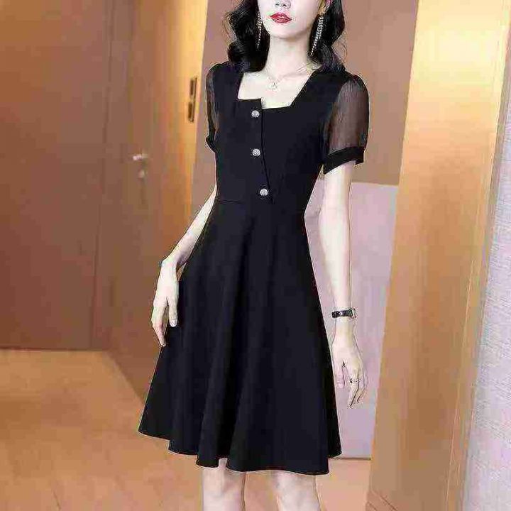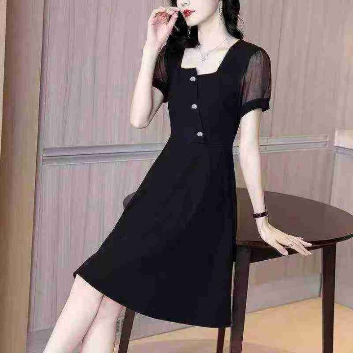 ️全清5.8 夏季女装新款赫本风雪纺拼接黑色连衣裙,修身显瘦方领A字小黑裙,全部独立包装,码数L-2xl,一共88件