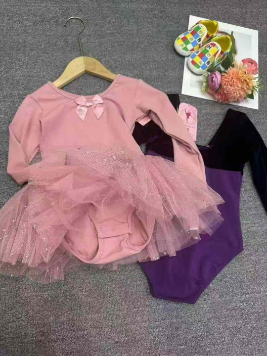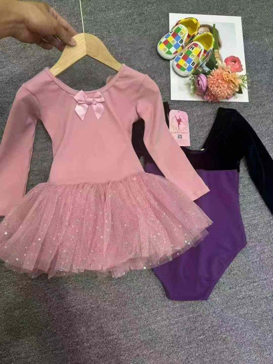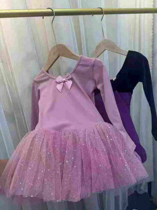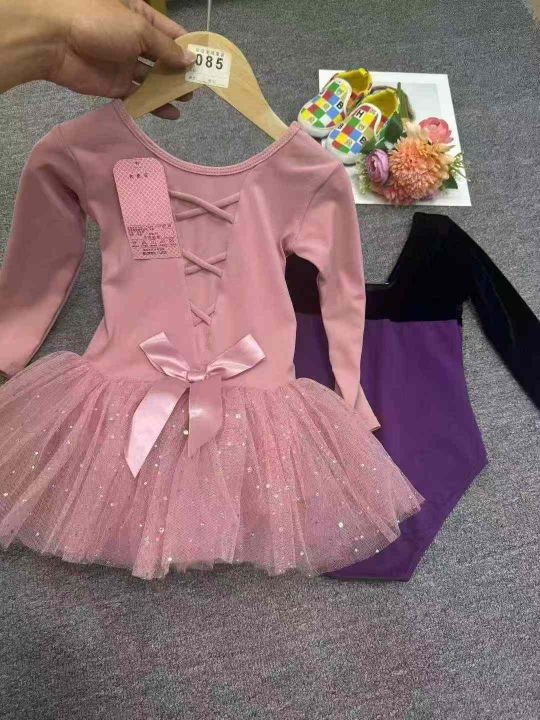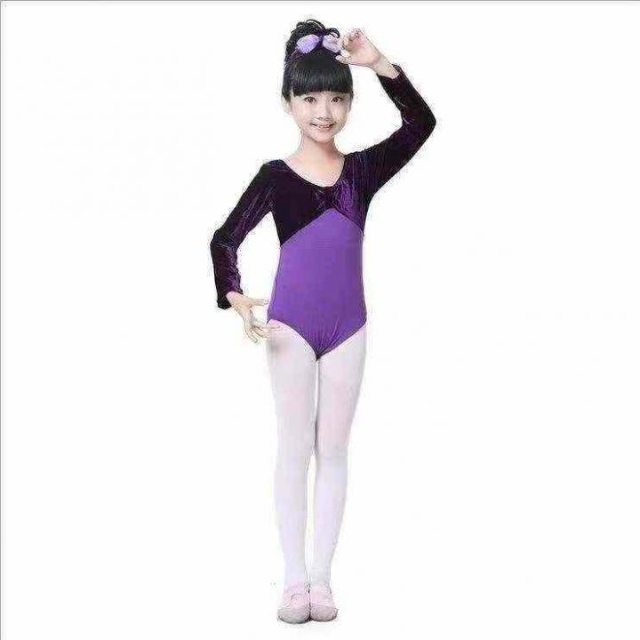 舞蹈服儿童女秋冬长袖练功服幼儿衣服中国舞跳舞蹈裙女孩芭蕾舞裙,独立包装,码数豆沙100 紫色110,数量90件左右,全清4.8元