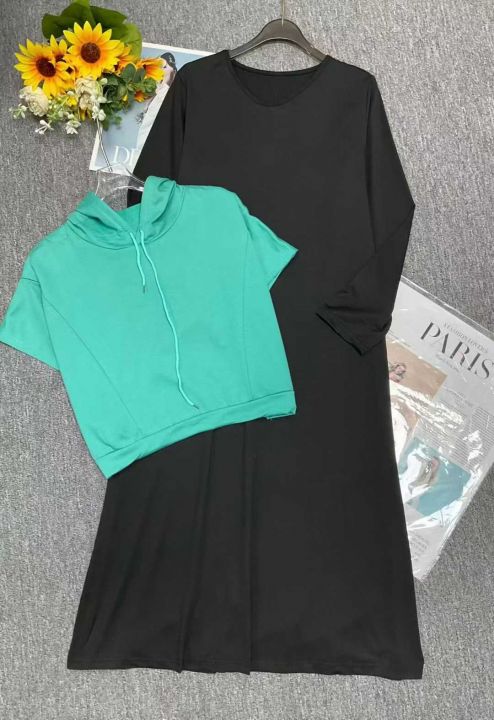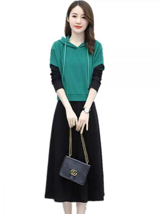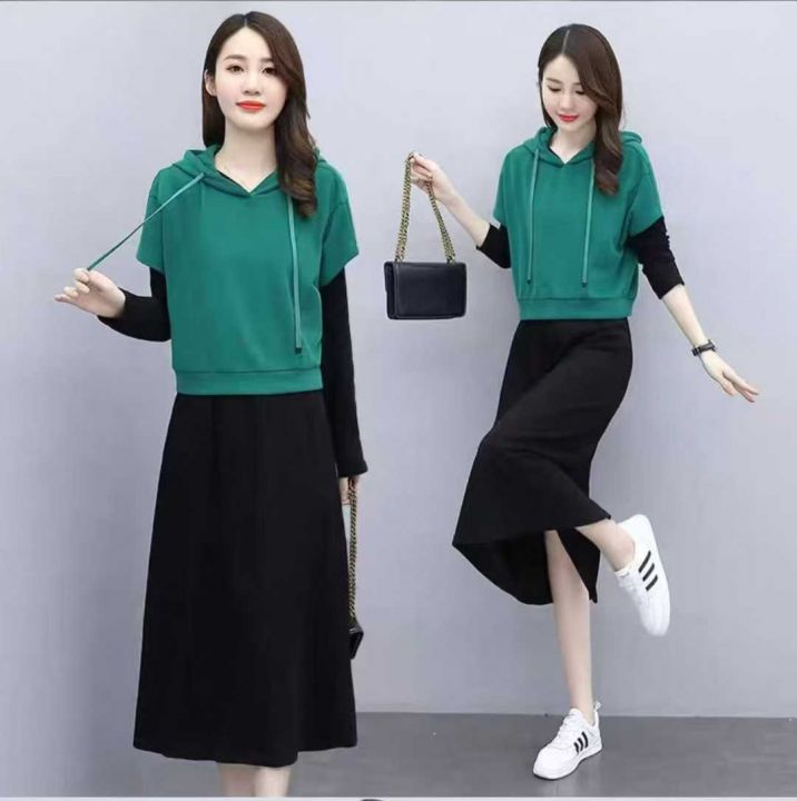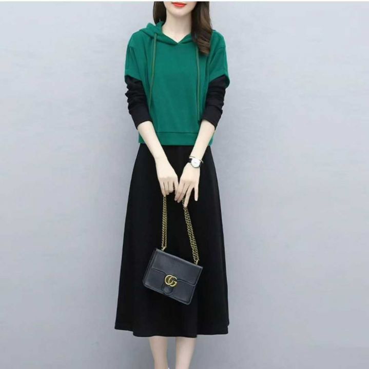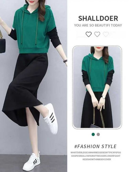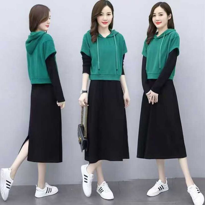捡漏款,大码女装宽松慵懒风连帽卫衣服马甲+棉T桖长裙...