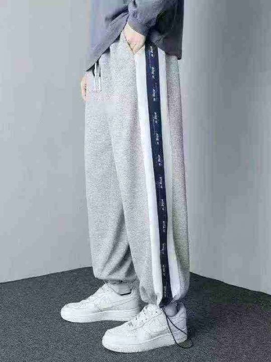 潮流拼接休闲卫裤港风薄款抽绳束脚裤宽松百搭直筒裤,男女同款 面料柔软亲...