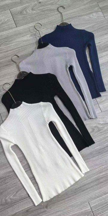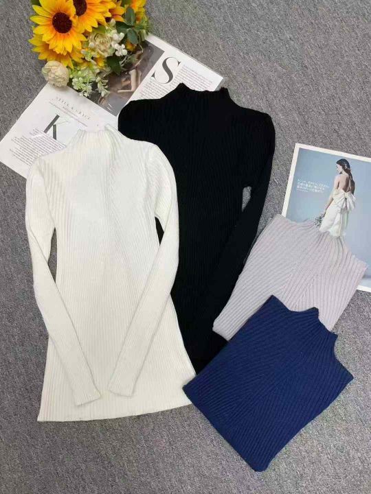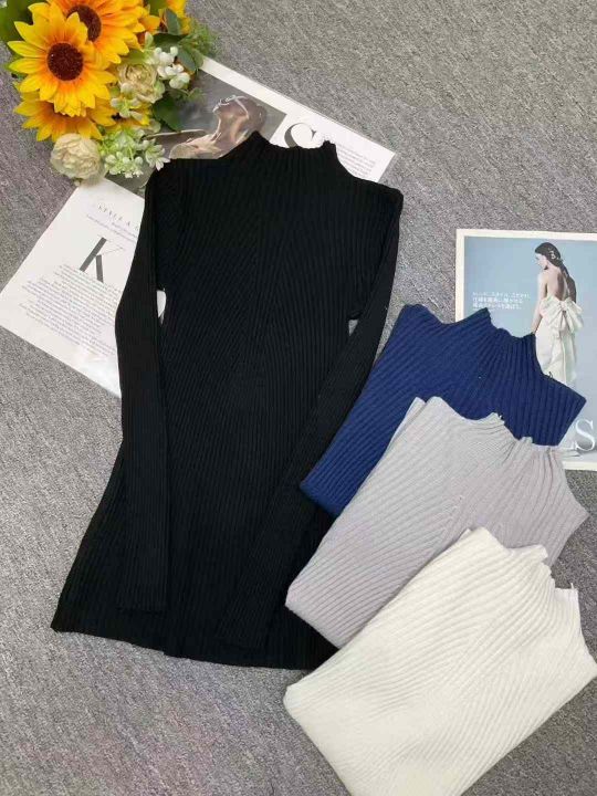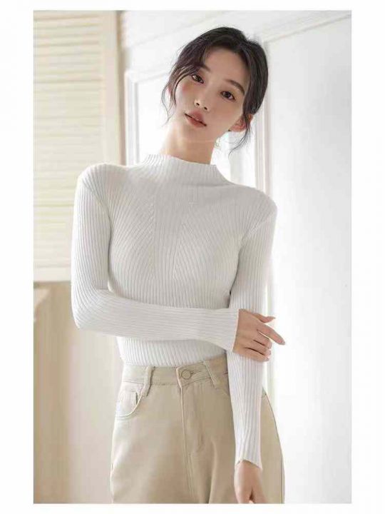 秋冬新款半高领弹力修身显瘦包芯纱套头毛衣,独立包装...