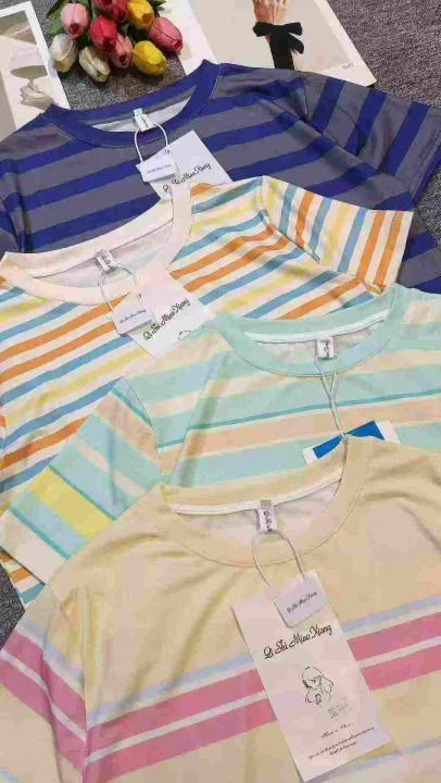 简约通勤ins设计感条纹圆领短袖,[爱心]260件左右,四个款,黄蓝条纹为主,码数S-2XL,穿80-140斤,[666]工厂原包装瑕疵,分货加一