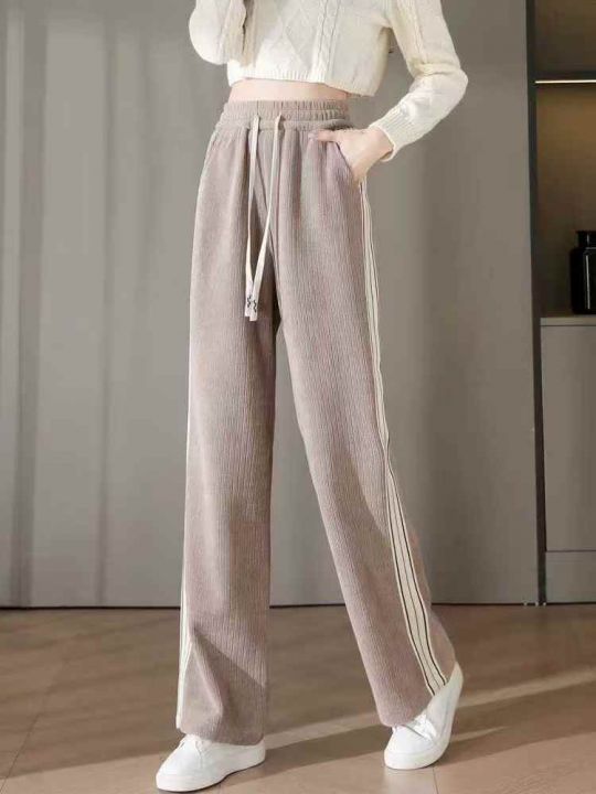 天猫精选450条,春秋款时尚撞色条纹休闲高腰垂感显瘦直筒窄版阔腿裤,天猫...