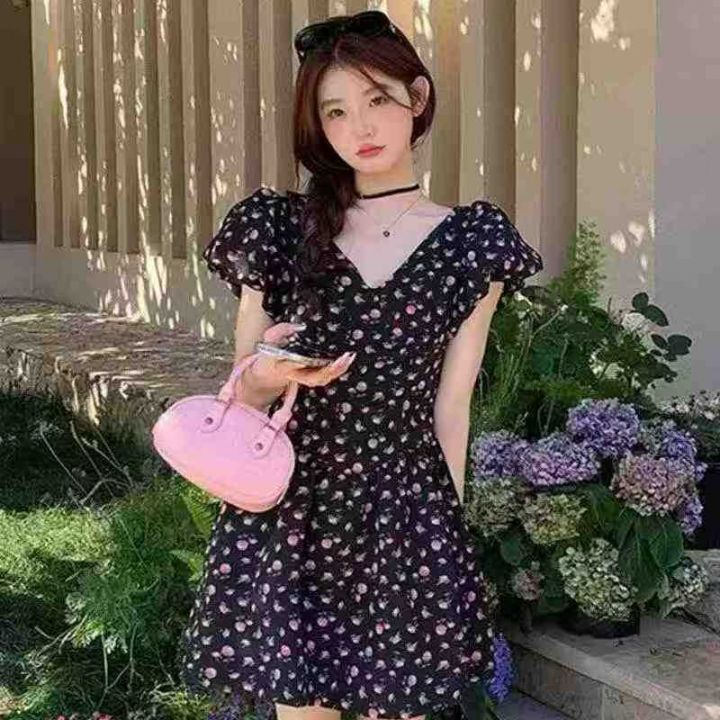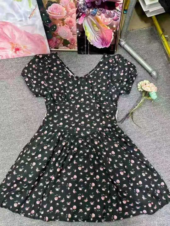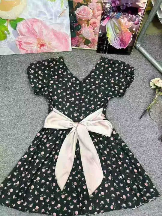 法式复古桔梗碎花连衣裙2025夏季新款蝴蝶结收腰显瘦a字裙,单款单色,2.3.4.5码,独立包装,货品干净,2600件左右,7.9清,分货加1