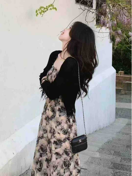 2025新款春法式高级感小个子长裙碎花吊带连衣裙女夏,整款2色,1.3.5码,345件,独立包装,货品干净,9.5清,分货加1