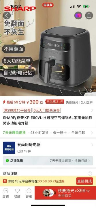 X 全新6升可视空气炸锅,颜值高,质量好,最后198台[6...
