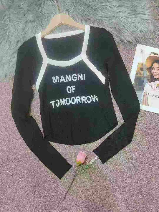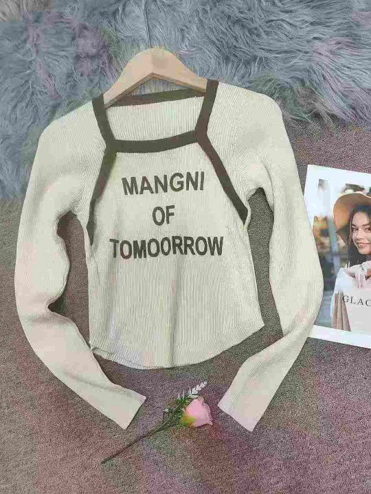 美式时髦拼色假两件方领长袖早秋新款字母修身显瘦针织上衣,品质很好,独立包装,均码,400件,清6.5,分➕1