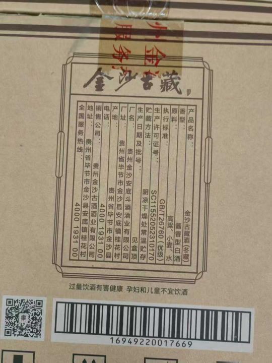 100大几十元一箱,金沙古藏酒23年,53度,酱香型,...