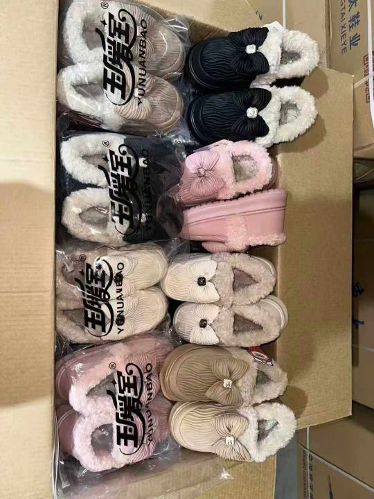 货号:2445一件48双,压皱皮蝴蝶结女棉鞋,36-41码混色混码装,发价16元...