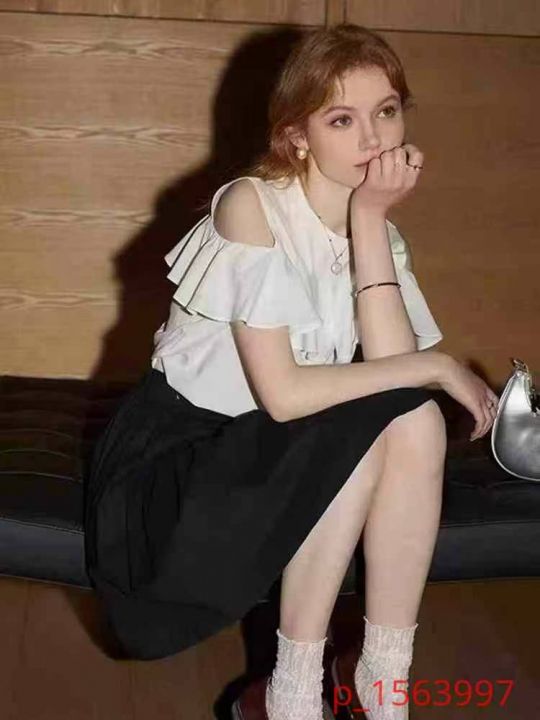 980多件亚麻法式露肩荷叶边纯色小众显瘦休闲女上衣,尺码:S~XL,实体店...