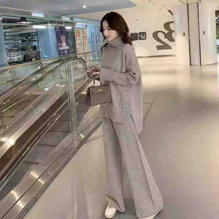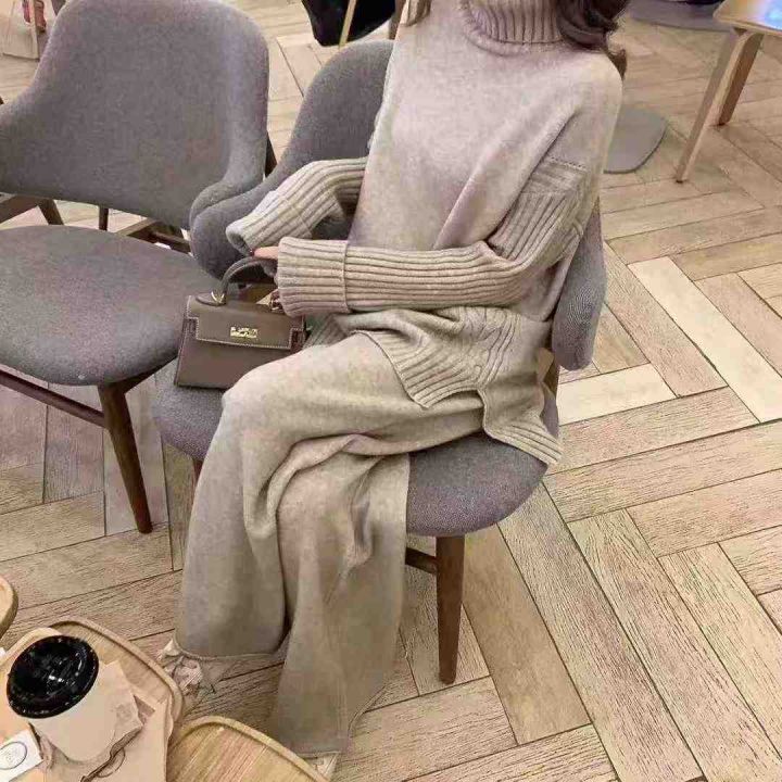秋冬新款慵懒风高领宽松开叉加厚包芯纱套头毛衣,独立...