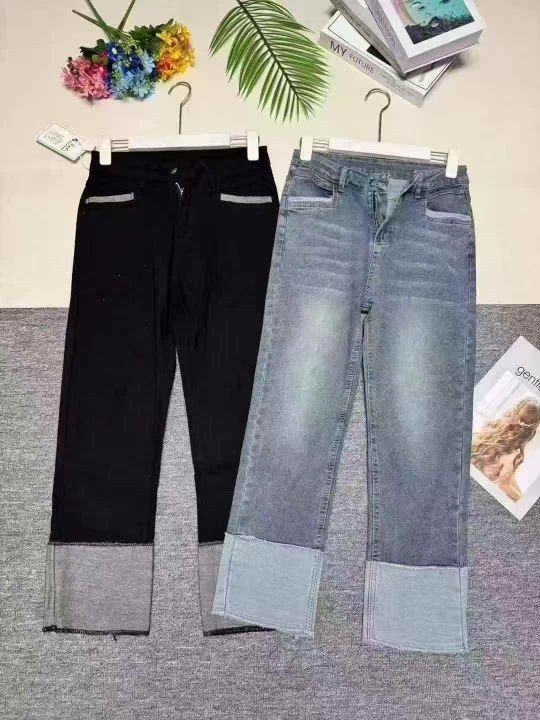 款号:K850#时尚洋气毛边破洞直筒牛仔裤550件,码数:XS-3XL,整款两色,品...