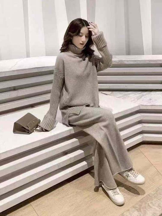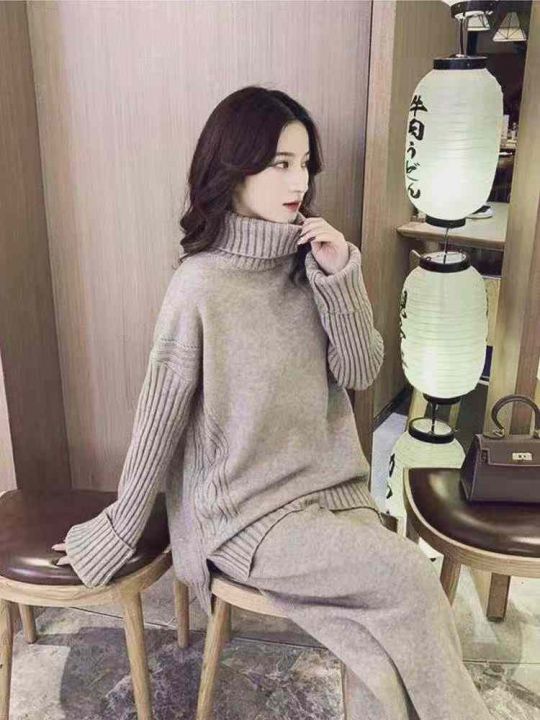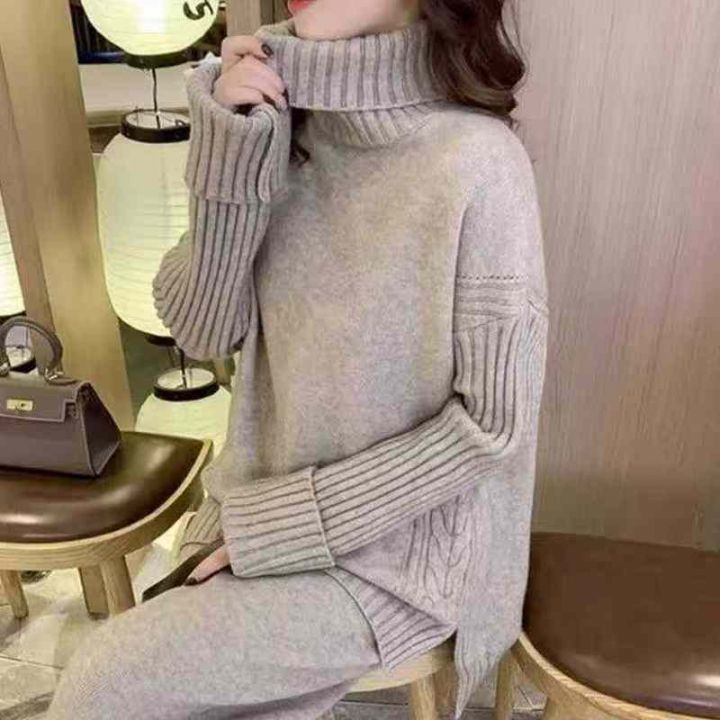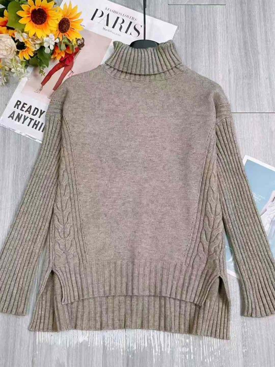 秋冬新款慵懒风高领宽松开叉加厚包芯纱套头毛衣,独立...
