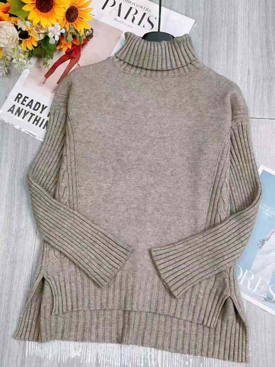 秋冬新款慵懒风高领宽松开叉加厚包芯纱套头毛衣,独立包装,均码面料软糯厚实弹力大,100件,全清7.9元超低价秒杀!