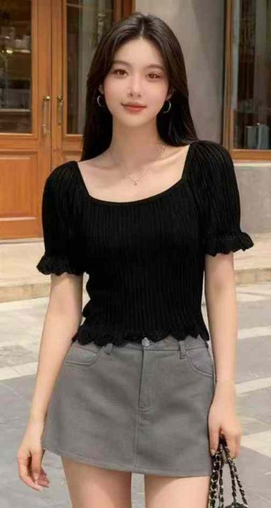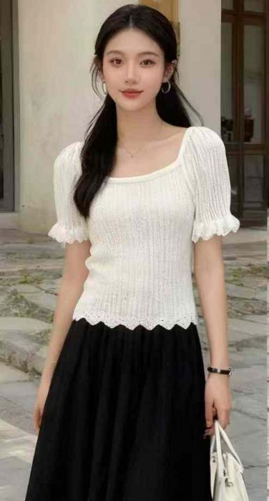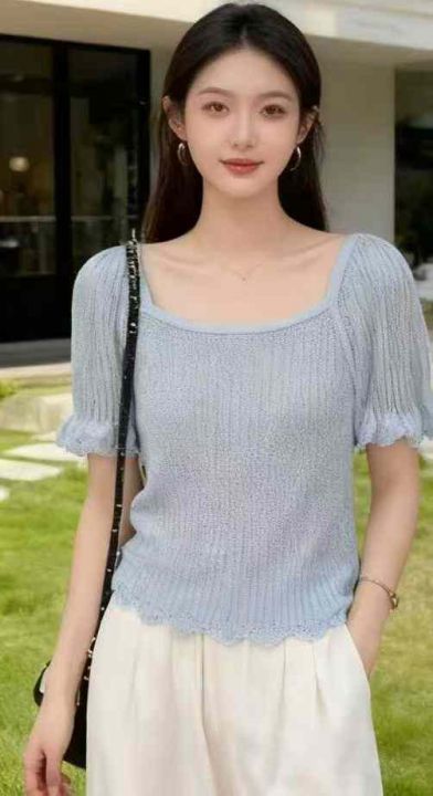 夏季新款女装冰丝设计款小众短袖针织毛衣,独立包装,...