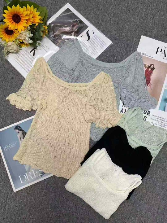 夏季新款女装冰丝设计款小众短袖针织毛衣,独立包装,均码面料柔软舒适,1100件,全清4.9元超低价秒杀!分货加一!