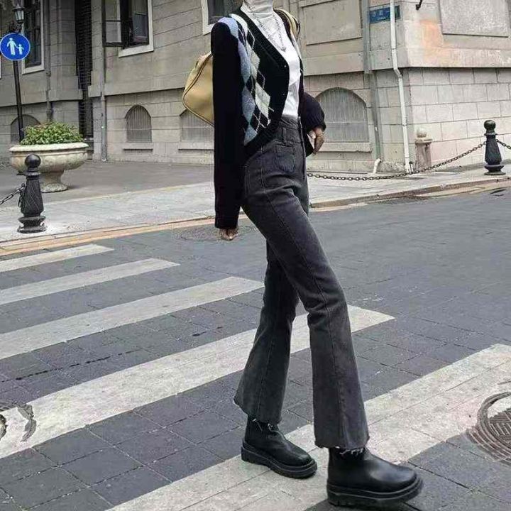 早秋季新品高弹力女装洗水棉毛边微喇叭牛仔裤,独立包...