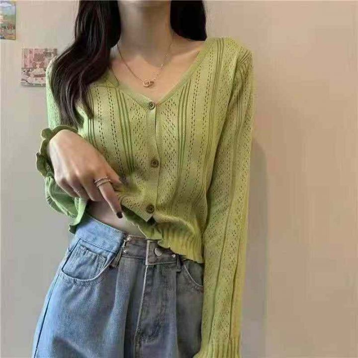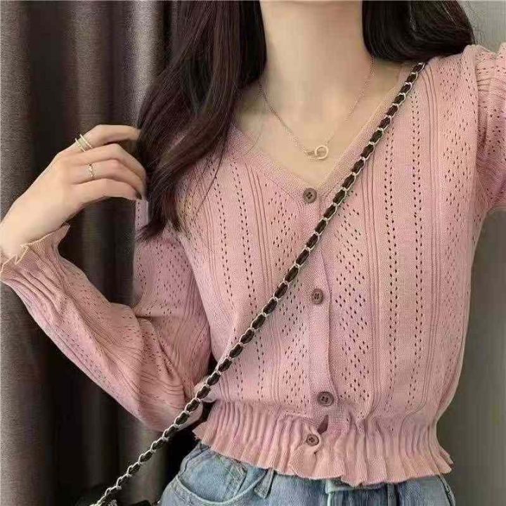 秋季新款木耳边设计款韩版V领镂空百搭长袖针织毛衣开衫,独立包装,单款多色,均码面料柔软舒适,1180件,全清6.9元超低价秒杀!分货加一!