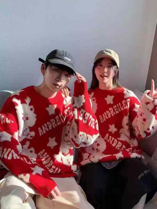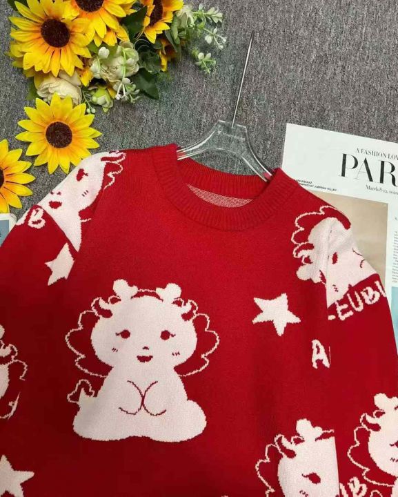 秋冬新款男女同款复古本命年红色提花包芯纱圆领套头毛衣,独立包装带吊牌,码数M--2XL码,213件,全清9.9元超低价秒杀!分货加一!