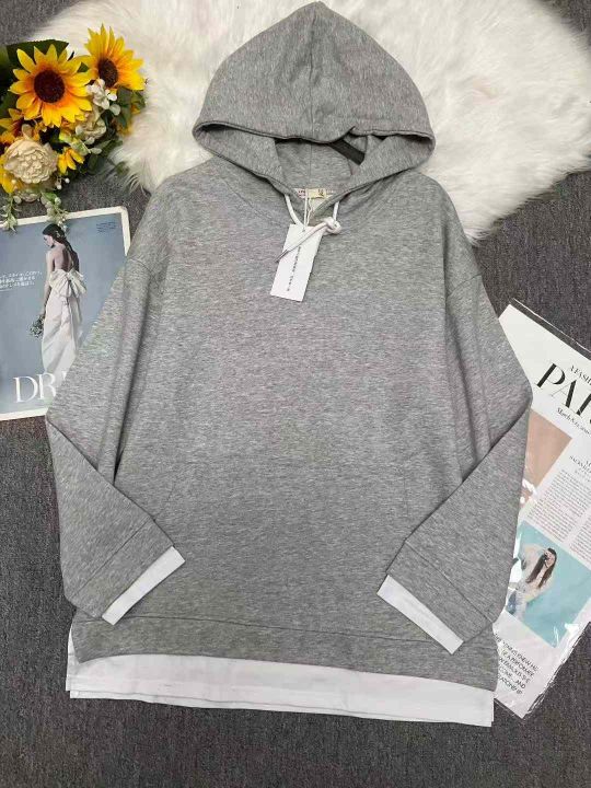秋冬新款假俩件网红拼接宽松休闲连帽纯棉卫衣,独立包...