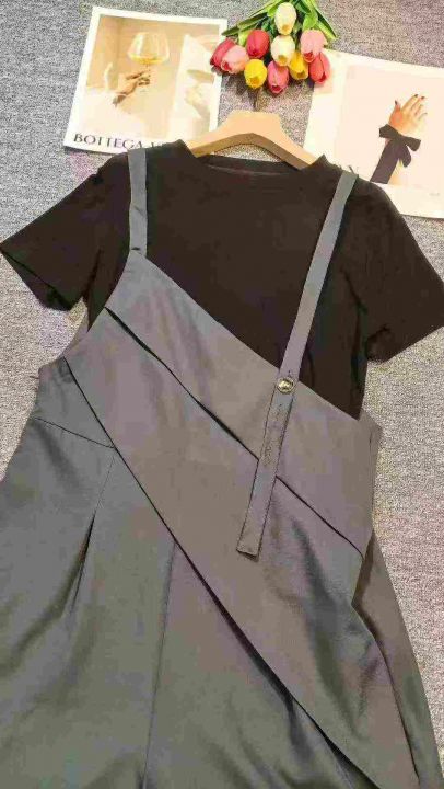 韩版不规则设计感短袖配背带裤套装,[爱心]190套左右,码数S-2XL,穿80-140斤,工厂原包原吊无瑕疵,分货加一