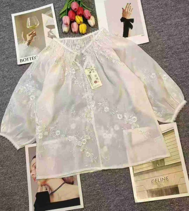 法式甜美小清新绣花拼接灯笼袖上衣,[爱心]40件左右,S码为主,码数S-L,穿80-130斤,万佳档口货,原包装️无瑕疵,[666]实体店品质,(模特图仅供参考)
