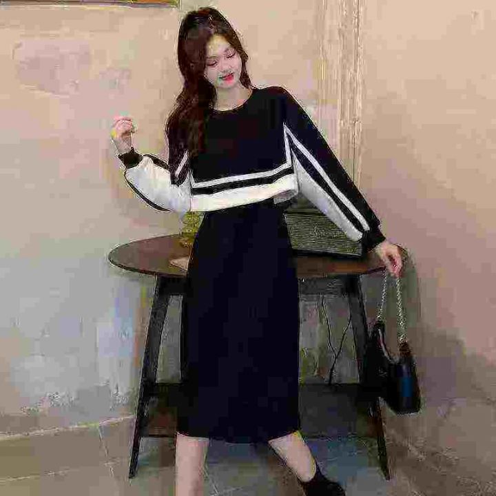 韩版设计感黑白撞色拼接收腰显瘦连衣裙,[爱心]90件左右,码数S-XL,长款为主,穿80-130斤,万佳档口货,原包装️无瑕疵,[666]实体店品质,分货加一