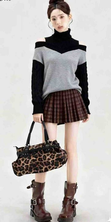 秋冬装新款慵懒风宽松撞色漏肩设计款小心机高领拼色套头毛衣,独立包装,面料软糯厚实,273件,全清5.9元超低价秒杀!模特上身效果可参考!