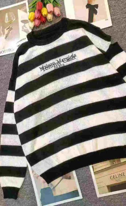 韩版条纹字母刺绣露肩男女同款针织上衣,[爱心]110件左右,均码,穿80-140斤,万佳档口货,原包装️无瑕疵,[666]实体店品质,分货加一