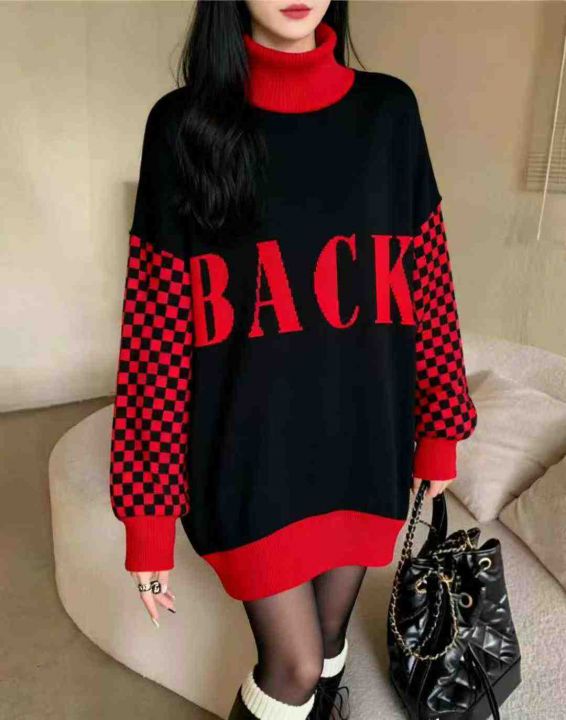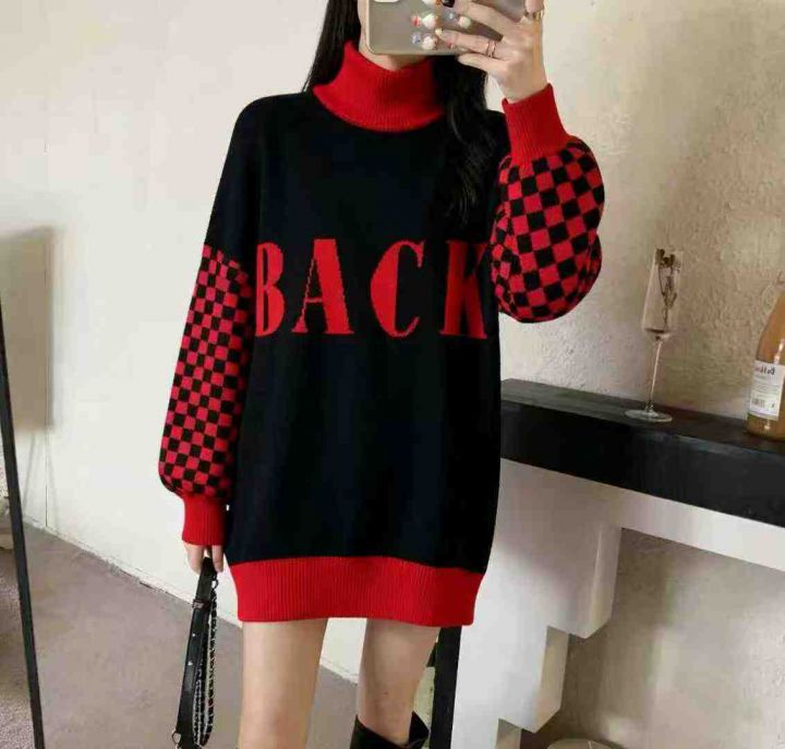 秋冬新款大版宽松慵懒风高领提花加厚款套头毛衣,独立...
