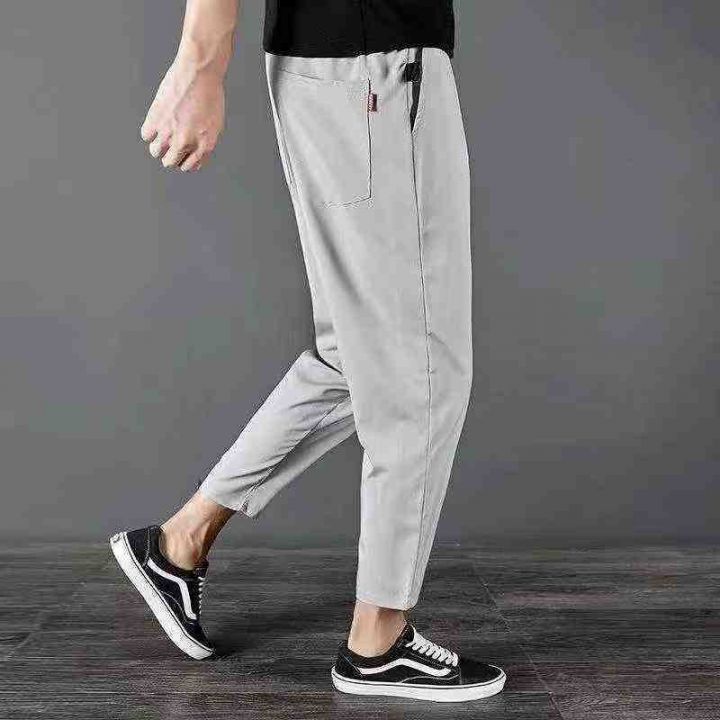 夏季男士裤子2025新款冰丝宽松运动九分薄款ins潮流休闲长裤,200件,深灰、浅灰、藏青、黑色四个色,码数M、L、XL、3XL、4XL、5XL