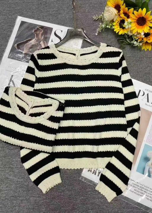 春秋新款撞色条纹时尚百搭宽松韩版针织毛衣套头毛衣,独立包装,均码面料柔...