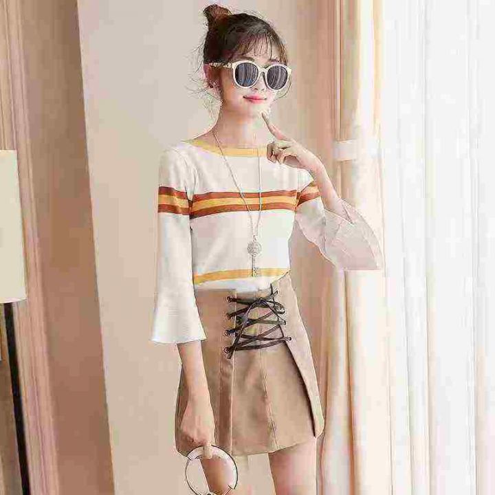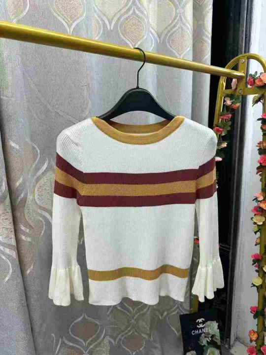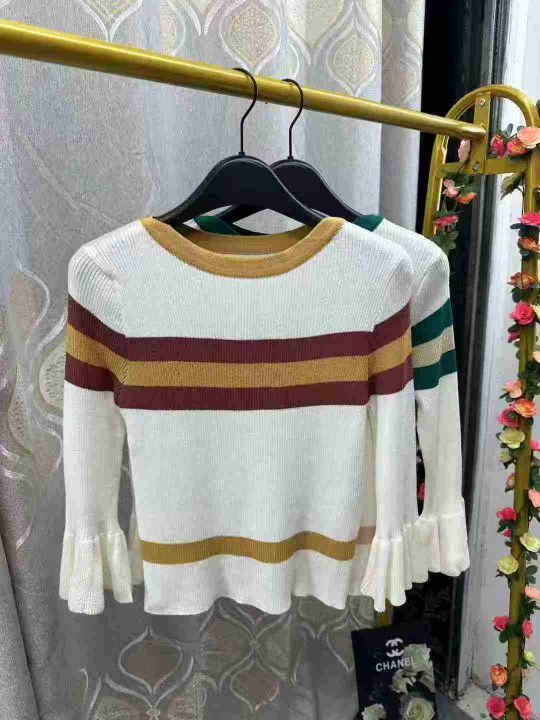 全清5.9 春秋新款女装时尚条纹冰丝针织衫,修身百搭喇叭袖,全部独立包装,一共150件