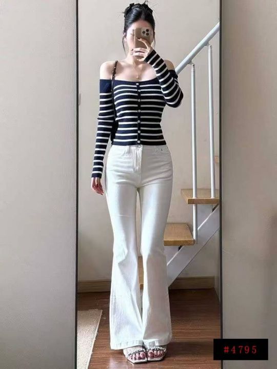 早秋新款韩系纯欲风辣妹条纹修身显瘦针织套头毛衣,独立包装,均码面料软糯...