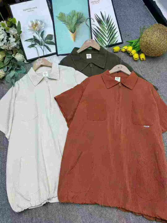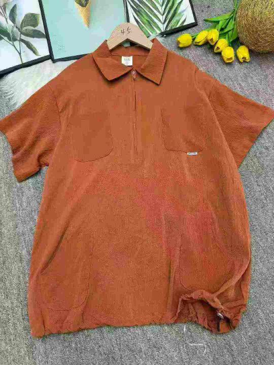 捡漏100件日系复古拉链潮牌翻领短袖t恤潮流宽松百搭工装衬衣,独立包装,码数1-3码(XL-3XL),货号925/81
