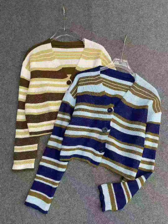软糯撞色条纹宽松慵懒风百搭针织毛衣开衫,均码面料软糯舒适弹力大,2色50...