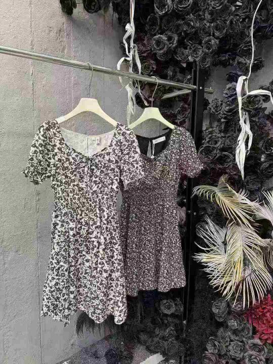 高品质甜美温柔风气质法式中长款雪纺碎花长裙显瘦茶歇初恋v领连衣裙子,带内衬,独立包装带吊牌,码数 均码,数量130件左右