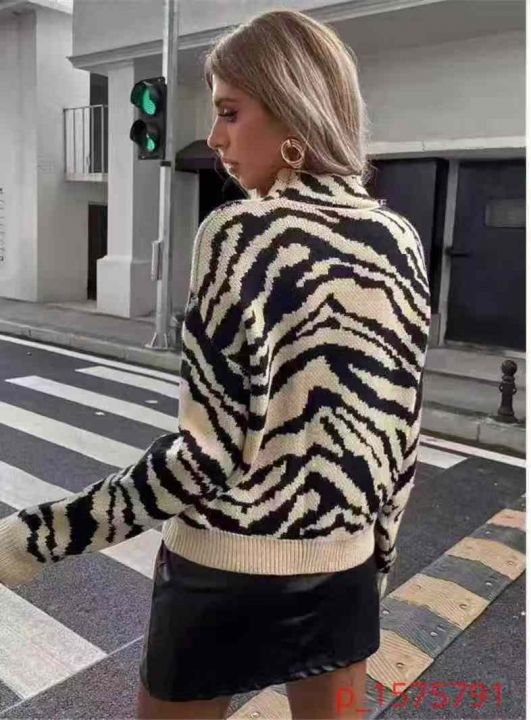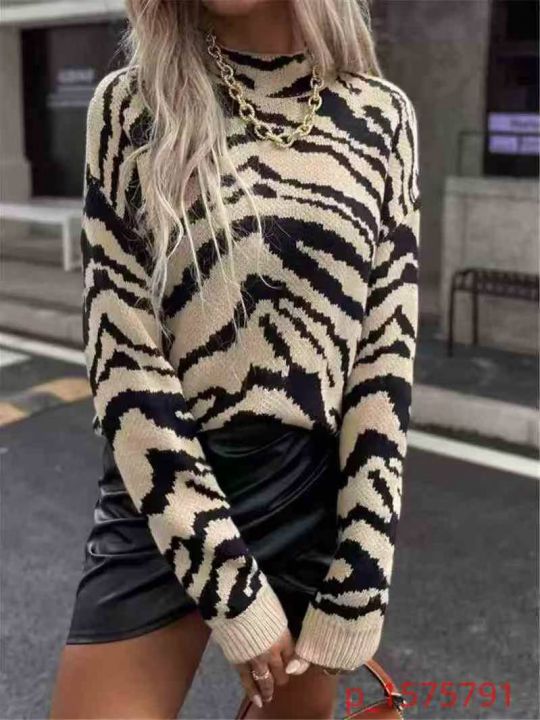 100多件秋冬新款斑马纹半高领毛衣慵懒风超宽松大码针织外穿,均码,独立包...