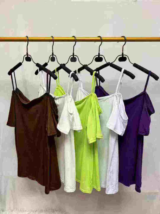 欧美时尚大版型女装纯色露肩短袖T恤,整款多色,数量 900 件,码数 S-XL。 独立包装带吊牌。腾仓库亏本处理全清 4.8