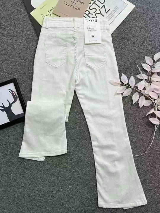白色高弹力微喇牛仔裤☕️80条全清11.8元,码数S到XL...
