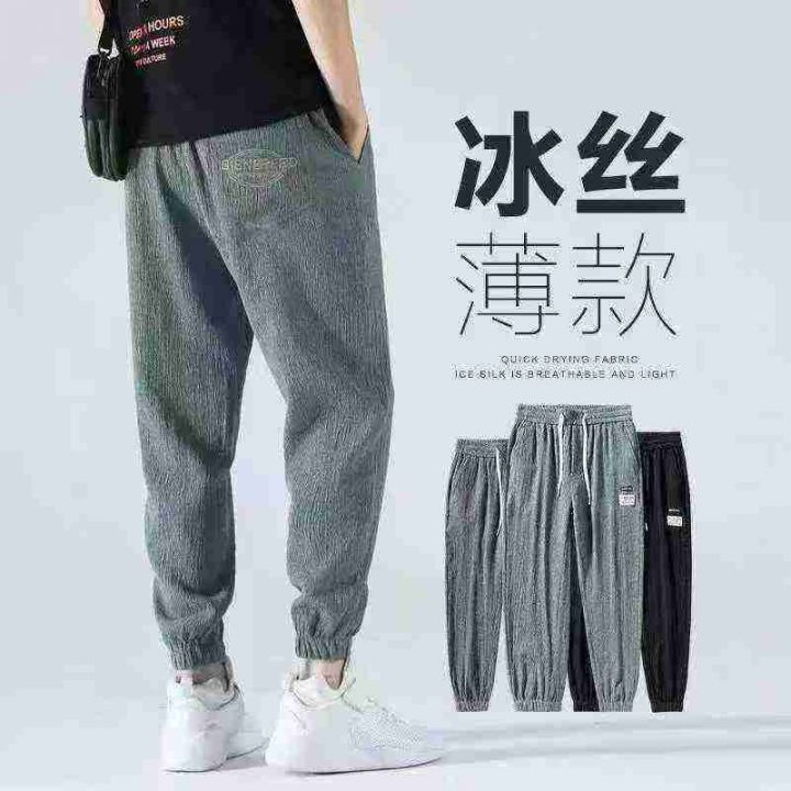 裤子男夏季薄款冰丝韩版潮流修身束脚运动裤裤,整款3色,独立包装,货品干净,M-5XL码,2415件,6.8清,分货加1