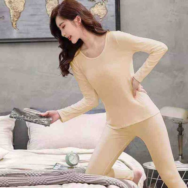 新款德绒保暖内衣女无痕圆领修身打底衫秋衣秋裤套装,独立包装,码数M-3XL,8900套,全清6.9分货➕1