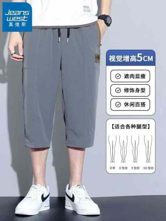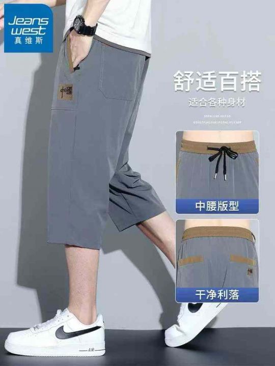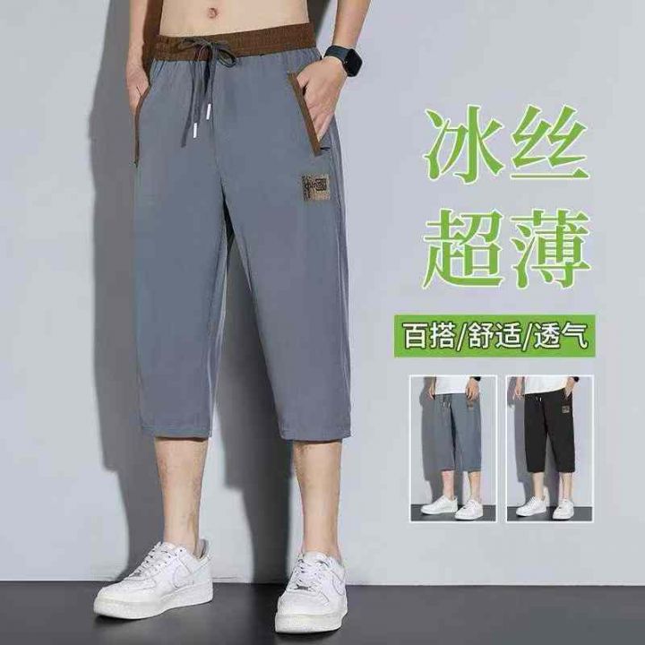 D77款冰丝七分裤男休闲裤国潮夏季薄款潮牌中裤宽松男款裤子,独立包装带吊牌,476件,L-5XL,全清7.8元
