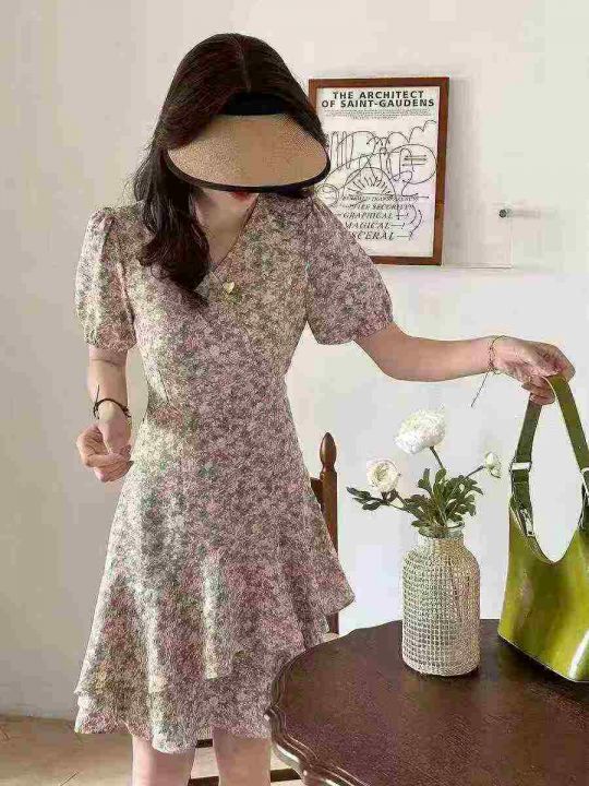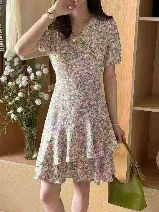 气质连衣裙女2025年新款夏季洋气碎花减龄时尚雪纺短款裙子300件,单款两色,尺码S~4XL.独立包装带吊牌,货品新净,全清福利价12.8元分货➕1